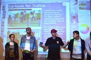 EVC New Media Arts Youth Producers walked the audience through the contents of their transmedia site, including video interviews on problems and solutions, an interactive community map, a digital comic strip, EVC archival footage, and “know your rights” information.